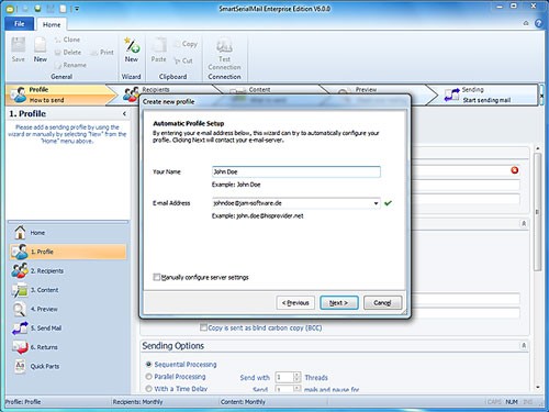Phần mềm SmartSerialMail cho phép bạn tự động gửi thư điện tử đến một số lượng lớn người nhận. Các email này có thể được gửi thông qua 64 kết nối đồng thời, giúp tối ưu hóa băng thông internet của bạn.