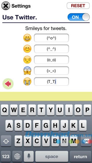 Smile Diary for iOS tích hợp với mạng xã hội Twitter , cho phép bạn chia sẻ những dòng nhật ký dưới dạng trạng thái.