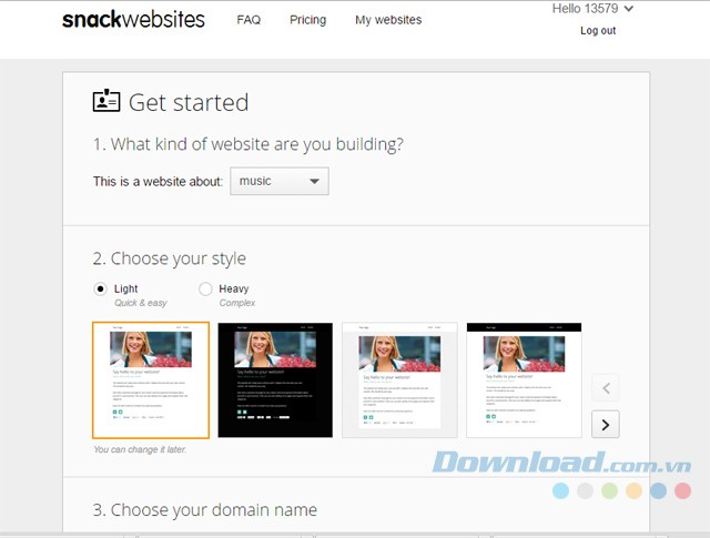 Ngay khi bắt đầu quá trình tạo trang web, người dùng sẽ được lựa chọn danh mục phù hợp với nội dung. Các danh mục phổ biến bao gồm trang web cá nhân, trang hồ sơ, cộng đồng trực tuyến, blog, trang giới thiệu sản phẩm, trang ban nhạc, hoặc trang sự kiện…