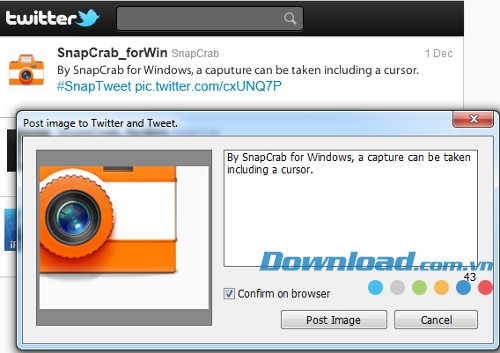 Ứng dụng SnapCrab dành cho Windows cho phép người dùng chia sẻ trực tiếp các hình ảnh đã chụp lên các nền tảng mạng xã hội phổ biến như Facebook, Twitter và Flickr. Ngoài ra, người dùng cũng có thể lưu trữ chúng trong ứng dụng Evernote.
