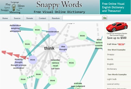 Giao diện trang web trực quan với biểu đồ kết nối các từ vựng. Chỉ cần di chuột đến một từ bất kỳ, nghĩa hoặc giải thích của từ đó sẽ được hiển thị ngay lập tức.
