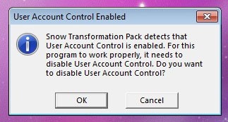 Trước khi cài đặt Snow Transformation Pack trên Windows Vista, bạn cần vô hiệu hóa User Account Control (UAC) trước khi tiến hành cài đặt phần mềm.