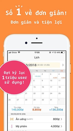 Ứng dụng này tạo điều kiện cho người dùng kiểm soát toàn bộ các khoản chi tiêu hàng ngày, đồng thời theo dõi thu nhập và số tiền tiết kiệm được mỗi tháng.