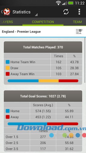 Soccer Super Scores cung cấp số liệu thống kê chi tiết liên quan đến các giải đấu, đội bóng, cầu thủ, cũng như lịch sử đối đầu và kết quả các trận đấu trước đó.