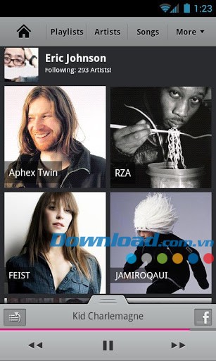 Người dùng còn có thể chia sẻ ảnh cá nhân với nghệ sĩ và những người hâm mộ khác, hoặc tìm kiếm những tài năng mới trong khi tận hưởng âm nhạc trên thiết bị Android của mình.