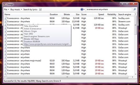 Lưu ý: Nên chọn tải các file có tần số bitrate cao để có chất lượng âm thanh tốt nhất. Trong quá trình tìm kiếm, Songr có thể tìm thấy cả file video, nhưng chất lượng hình ảnh thường không cao.