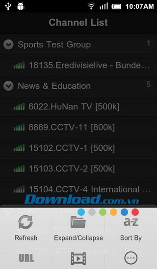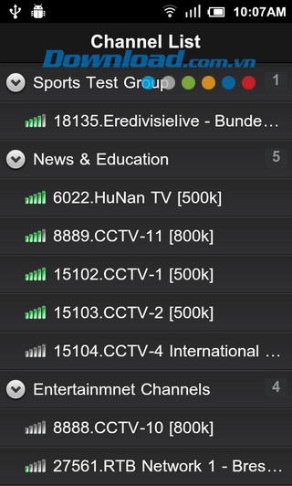 Chọn kênh bạn muốn xem từ danh sách, ứng dụng sẽ tự động bắt đầu phát. Tương tự như phiên bản máy tính, bạn cần kiên nhẫn chờ đợi quá trình tải ban đầu để ứng dụng buffer. Hãy chọn tốc độ kênh phù hợp với kết nối internet của bạn.
