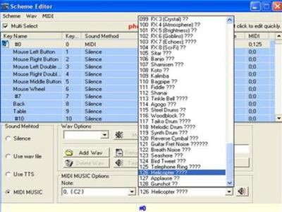 Điểm đặc biệt nhất của SKM là khả năng cho phép bạn tạo ra các âm thanh riêng biệt. Hãy nhấn vào “New Scheme” để mở bảng “Scheme Editor”. Tại đây, bạn sẽ thấy danh sách đầy đủ các phím trên bàn phím và chuột để bạn tự do xây dựng các giai điệu độc đáo.