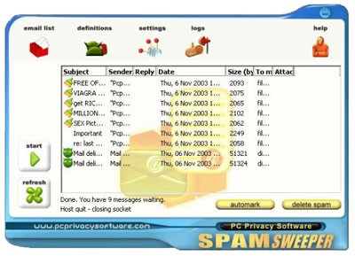 Spam Sweeper là phần mềm diệt spam hàng đầu từ PC Privacy Software, nổi bật với giao diện đơn giản, dễ sử dụng và khả năng quét virus đi kèm trong email.
