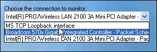 Để kiểm tra tốc độ Upload, tốc độ mạng LAN hoặc tốc độ sóng Wifi, chỉ cần nhấn chọn các mục Upload, Lan hoặc Wifi Signal. Ví dụ, để kiểm tra tốc độ Upload file, chọn thiết bị kết nối internet trong mục Choose the connection to monitor, và chương trình sẽ tự động kiểm tra và hiển thị kết quả. Để kiểm tra đồng thời tốc độ Download và Upload, hãy chọn Total Up/Down.
