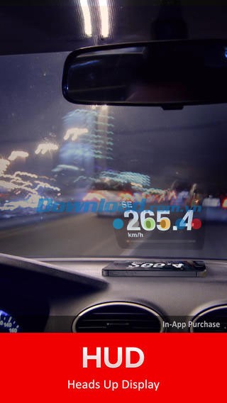 HUD - Head-Up Display là một điểm nổi bật độc quyền của ứng dụng Speed Tracker. Chỉ cần kích hoạt tính năng HUD và đặt thiết bị iPhone hoặc iPad xuống phía dưới kính chắn gió xe, bạn sẽ có thể theo dõi tốc độ một cách chính xác nhất, được hiển thị trực tiếp lên kính.