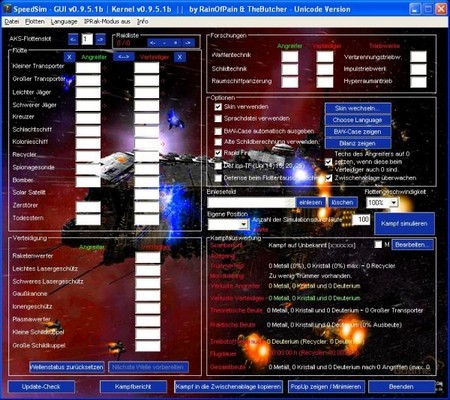 Người chơi chỉ cần cung cấp thông tin về số lượng tàu chiến, hệ thống phòng thủ và cấp độ công nghệ (bao gồm công nghệ vũ khí, công nghệ khiên chắn, công nghệ giáp) của cả hai phe tham chiến.