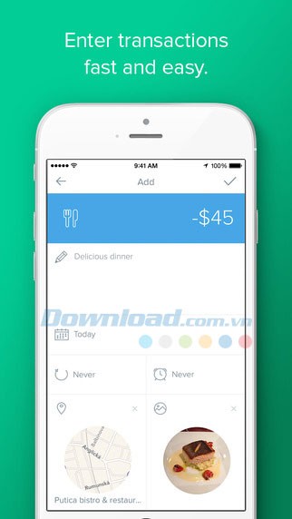 Ghi lại thông tin địa điểm cho mỗi giao dịch, ví dụ như nhà hàng, quán cà phê, cửa hàng, giúp bạn theo dõi chi tiêu tại các địa điểm quen thuộc.