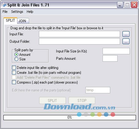 Split Files là một tiện ích giúp chia nhỏ các file thành nhiều phần hoặc ghép nhiều file thành một file lớn, tạo sự thuận tiện trong quá trình sử dụng.