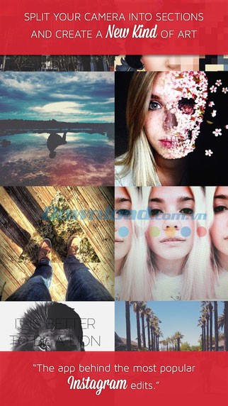 Điểm nổi bật của Split Pic nằm ở kho bộ lọc ảnh nghệ thuật đa dạng cùng vô số hiệu ứng ảnh ấn tượng. Ứng dụng này còn là một trong số ít các lựa chọn trên App Store hỗ trợ tính năng chụp ảnh nhân bản, giúp bạn dễ dàng ghép nhiều dáng chụp của cùng một người vào một khung hình.