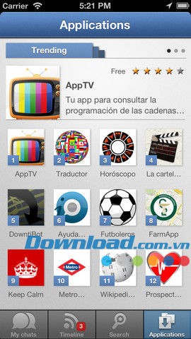 Phần ứng dụng cung cấp cho người dùng nhiều tiện ích thông qua tính năng nhắn tin tức thời. Bao gồm các ứng dụng về thông tin giao thông, kết quả bóng đá, tỷ giá hối đoái... đáp ứng nhu cầu khám phá của bạn.