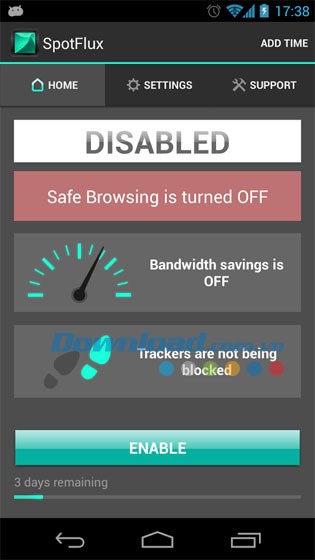 Spotflux cho phép truy cập Internet một cách an toàn và tiết kiệm chi phí. Đây là giải pháp tối ưu để cải thiện và bảo vệ kết nối mạng của bạn. Dịch vụ này thực hiện hàng triệu thuật toán thời gian thực trên nền tảng đám mây, mã hóa và nén lưu lượng truy cập Internet trên thiết bị di động.