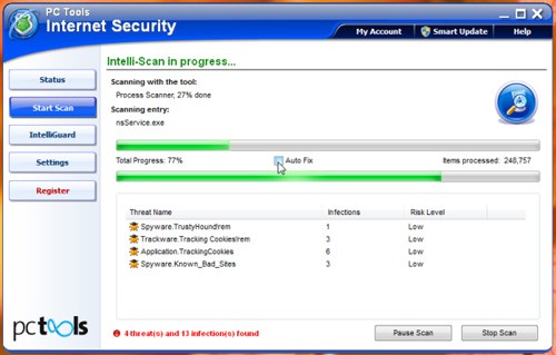 Bên cạnh công cụ dò tìm và loại bỏ virus, malware, tính năng IntelliGuards của PC Tools Internet Security cung cấp nhiều tùy chọn bảo vệ tùy biến cho duyệt web, email và mạng. Mục IntelliGuard hoạt động hiệu quả trong việc giải thích từng tính năng và quản lý chúng một cách dễ dàng.