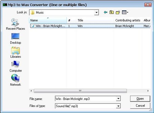 Trong phần Main, chọn nút chuyển đổi tương ứng với định dạng file nhạc của bạn. Ví dụ, nếu bạn có file mp3, hãy chọn MP3 to Wave… và chọn đường dẫn đến file nhạc.