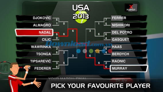 Người chơi có thể lựa chọn vận động viên yêu thích để chinh phục các giải đấu Grand Slam danh giá.