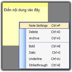 Một khung ghi chú màu vàng sẽ hiện lên, cho phép bạn nhập nội dung (hỗ trợ tiếng Việt). Sau khi hoàn tất, nhấp chuột phải vào khung ghi chú và chọn "Note Settings" để tùy chỉnh.