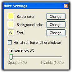 Trong cửa sổ "Note Settings", bạn có thể thay đổi màu sắc, font chữ và các thuộc tính khác của ghi chú. Đảm bảo chọn "Remain on top of Other Windows" để ghi chú luôn hiển thị trên cùng, giúp bạn không bỏ lỡ bất kỳ việc gì.