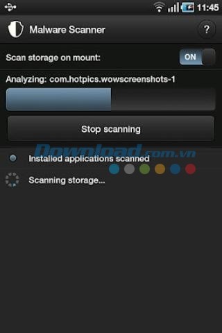Ngay sau khi một ứng dụng mới được cài đặt, STOPzilla Mobile Security for Android sẽ tự động tiến hành quét.