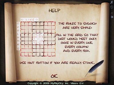 Xuất phát từ Nhật Bản, Sudoku là một dạng trò chơi giải đố (puzzle) mang đậm dấu ấn nghệ thuật truyền thống của đất nước này. Trò chơi cung cấp ba mức độ thử thách khác nhau, cùng khả năng lưu và tiếp tục các ván chơi chưa hoàn thành. Giao diện của Sudoku được thiết kế đơn giản, thân thiện, giúp người chơi dễ dàng tiếp cận.