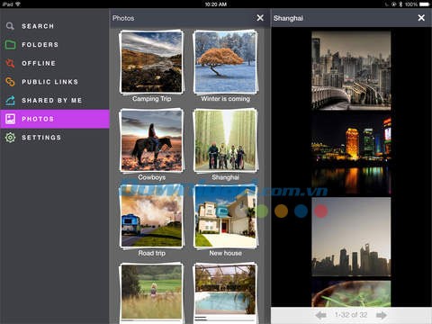 Thư viện ảnh được tích hợp sẵn, cung cấp giao diện trực quan để truy cập toàn bộ kho ảnh được lưu trữ trên tài khoản SugarSync.