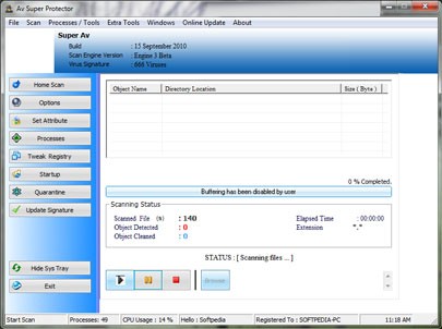 Bên cạnh khả năng quét, Super Av còn cho phép người dùng quản lý các tiến trình đang chạy trên hệ thống. Bạn có thể thay đổi mức độ ưu tiên của một tiến trình, tạm dừng hoặc kết thúc nó, làm mới danh sách tiến trình hoặc thậm chí thêm một tiến trình mới vào hệ thống.
