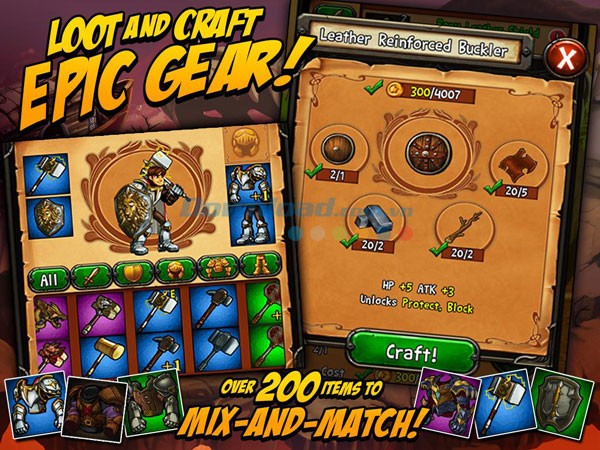Tự tay chế tạo vũ khí quý hiếm và tùy chỉnh anh hùng của bạn thông qua hệ thống kết hợp vật phẩm sâu sắc.