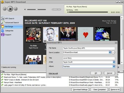 Thông thường, Super MP3 Download sẽ giới thiệu đến bạn những bài hát nổi bật nhất trên toàn cầu. Ứng dụng cung cấp bảng xếp hạng Hot 100 hàng tuần, đồng thời liệt kê những bản nhạc được yêu thích nhất từ 14 quốc gia khác nhau.