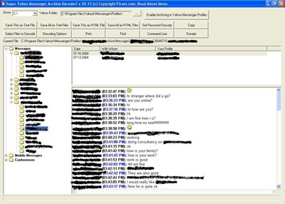 Cách sử dụng Yahoo Messenger Archive Decoder như thế nào? Chỉ cần chạy chương trình ymdecode1 và mở file .dat trong thư mục Program Files/Yahoo!Messenger/Profiles/[Nick] để xem nội dung trò chuyện.