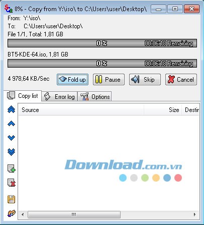 Nếu bạn sao chép nhiều tập tin hoặc thư mục cùng lúc, hãy nhấp vào nút ‘Fold Up’ trong tab ‘Copy list’. SuperCopier sẽ hiển thị danh sách các tập tin đang được sao chép và những tập tin đã hoàn thành.