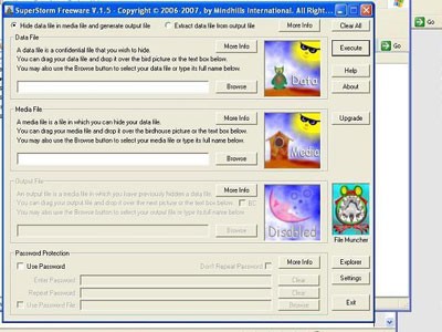 SuperStorm là một tiện ích miễn phí cho phép bạn ẩn các tập tin bên trong các file đa phương tiện như ảnh, nhạc hoặc video. Các file media này vẫn hoạt động bình thường, không hề có dấu hiệu của việc "che giấu" dữ liệu bên trong.