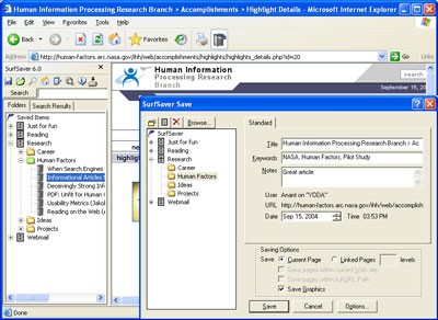 Thông qua SurfSaver, việc sắp xếp và tìm kiếm thông tin đã thu thập từ Internet trở nên dễ dàng hơn bao giờ hết.