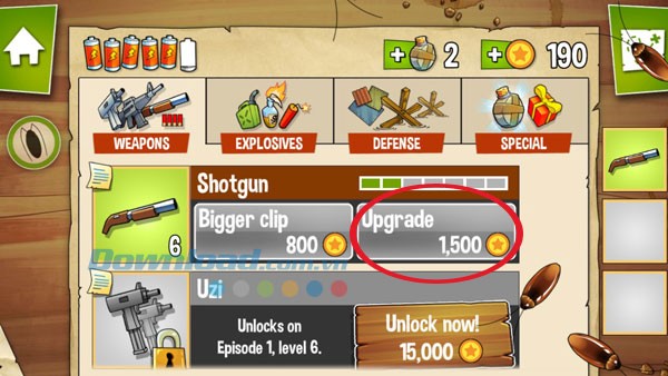 Để sở hữu những loại vũ khí mới, người chơi cần tích lũy vàng thông qua việc hoàn thành các màn chơi và thu thập trong quá trình trải nghiệm, sau đó ghé thăm cửa hàng trong game để giao dịch. Bạn có thể lựa chọn giữa nâng cấp các vũ khí hiện có hoặc mua những vũ khí hoàn toàn mới.