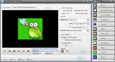 Với SWF to GIF Animation, bạn có thể dễ dàng chuyển đổi các file Flash (.SWF) sống động thành ảnh .GIF động, hoặc các định dạng ảnh tĩnh như .JPG, .BMP,… một cách nhanh chóng.