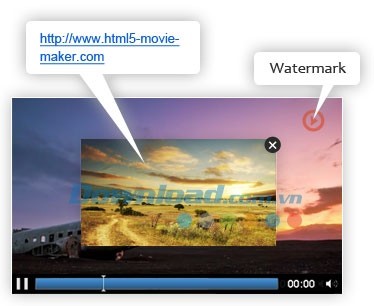 Về quảng cáo, bạn có thể chèn một hình ảnh và thiết lập liên kết để người dùng truy cập trang web của bạn khi nhấp vào hình ảnh đó. Sau khi tạo, bạn có thể xem trước video HTML5 với quảng cáo và điều chỉnh kích thước của quảng cáo.