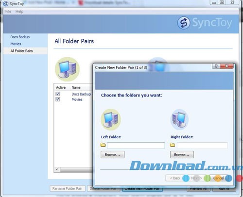 SyncToy áp dụng một phương pháp đồng bộ mới, được gọi là Folder Pairs. Thay vì thiết lập các tùy chọn đồng bộ tổng quát rồi mới chọn thư mục, bạn có thể xác định chính xác những thư mục nào cần đồng bộ và cách thức đồng bộ sẽ diễn ra như thế nào.