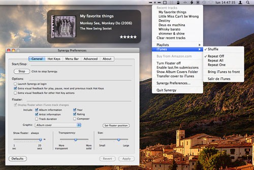 Synergy là một ứng dụng được phát triển trên nền tảng Cocoa, dành riêng cho hệ điều hành Mac OS X. Ứng dụng này mang đến khả năng tích hợp 3 nút điều khiển cơ bản của iTunes trực tiếp lên thanh menu, bao gồm: tua bài trước, tua bài tiếp theo và nút chơi/tạm dừng.