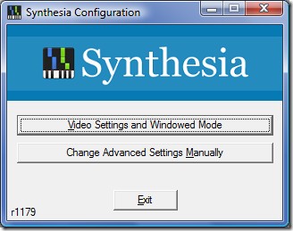 Các phiên bản Synthesia mới nhất được trang bị công cụ cấu hình, cho phép bạn tùy chỉnh các cài đặt video. Để thực hiện điều này, hãy click vào Start, All Programs và chọn Synthesia, sau đó nhấp vào Synthesia Configuration. Tiếp theo, click Video Settings and Windowed Mode.