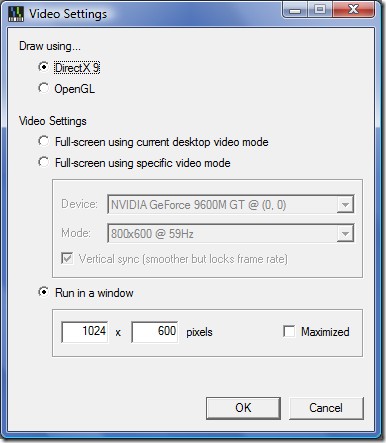 Nếu máy tính của bạn gặp vấn đề với DirectX, bạn có thể chọn OpenGL như một giải pháp thay thế. Trong phần Video Settings, bạn có thể chọn nút bên cạnh Full-screen using specific video mode để giảm độ phân giải của Synthesia. Nếu bạn dự định sử dụng các ứng dụng khác song song với Synthesia, hãy chọn Run in a window, chọn độ phân giải mong muốn hoặc chọn Maximized để mở cửa sổ ở chế độ toàn màn hình. Cuối cùng, nhấn Ok để lưu cài đặt.