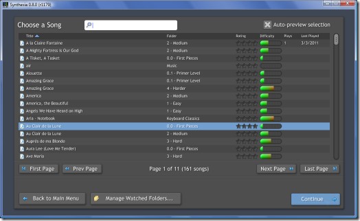 Click Go Back để quay lại menu chính, sau đó nhấp Choose a song. Nếu bạn là người mới bắt đầu, hãy chọn một bài hát có đánh giá 0.0 trong First Pieces. Nếu bạn đã có kinh nghiệm chơi piano, bạn có thể chọn một bản nhạc có độ khó cao hơn. Click Continue để bắt đầu.