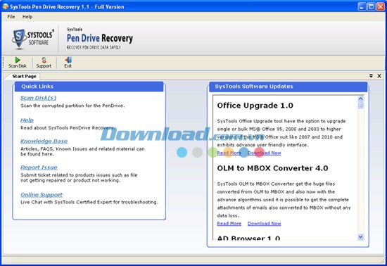 Bước 1: Để bắt đầu, hãy mở Start Menu » Programs » SysTools Pen Drive Recovery » SysTools Pen Drive Data RecoverySoftware. Một giao diện sẽ được hiển thị như sau: