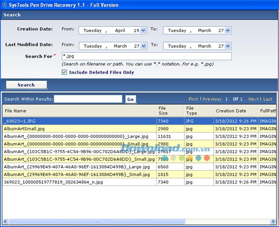 Tính năng tìm kiếm hỗ trợ tùy chọn "Include Deleted Files Only", cho phép bạn truy cập các file đã bị xóa thay vì dữ liệu thông thường.