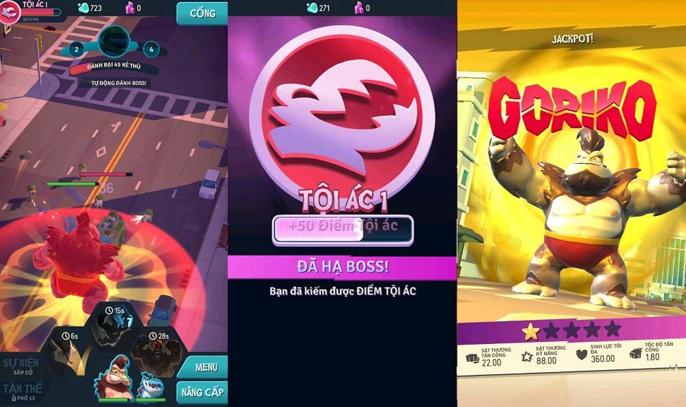 Hoàn thành các màn chơi và đánh bại boss cuối cùng để nhận điểm Tội Ác, sử dụng điểm này để nâng cấp nhân vật và mở khóa các phần thưởng giá trị.