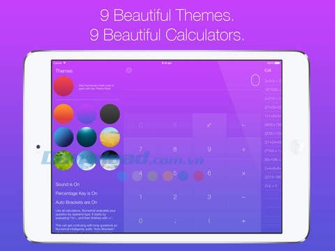 Phiên bản Numerical mới nhất đã được bổ sung thêm 9 theme máy tính ấn tượng. Ứng dụng này tương thích với mọi thiết bị iDevice, tự động thêm dấu ngoặc đơn, giúp loại bỏ phần lớn các thao tác thủ công để người dùng có thể tính toán một cách nhanh chóng nhất.