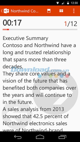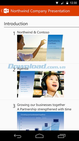 Với Office Remote cho Android, người dùng có thể khởi động bài thuyết trình PowerPoint, điều khiển việc chuyển đổi slide, xem ghi chú và thao tác con trỏ laser trực tiếp từ màn hình điện thoại.