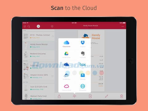 Sau khi hoàn tất quá trình scan, bạn có thể dễ dàng chia sẻ tài liệu scan qua Email hoặc lưu trữ chúng trên các nền tảng đám mây phổ biến như iCloud Drive , Box , Dropbox , Evernote và nhiều dịch vụ khác.